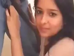 Horny Indian chick gives a sensual blowjob while driving
